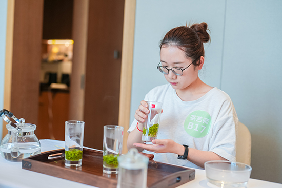 技能操作又分规定茶艺、自创茶艺二个项目。规定茶艺重点考量选手的茶艺基本功:举止礼仪、行为习惯、气质神韵、协调能力、审美情趣、茶汤质量等。自创茶艺为茶文化创意作品,从作品的原创性、艺术性及选手的文学修养、礼仪素养、茶汤质量调控能力等方面,全面考量选手的茶艺技能。