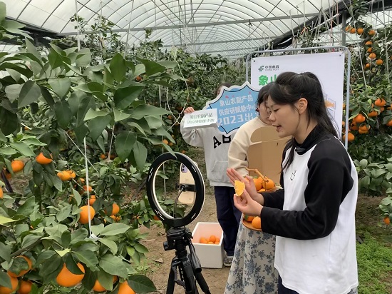 “欢迎来到直播间,这里是象山县第七届柑橘节红美人开摘仪式现场,我们在美丽的象山县晓塘乡,进行我们的第一场户外直播……”11月16日上午,伴随着充满激情的声音,宁波建设工程学校电子商务专业的高三学生首次出现在助农一线,为家乡的红美人销售带去新景象。