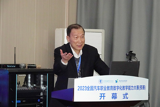 刘兴华主任代表主办方致辞。他表示,本届比赛共有来自全国30多所学校的40多支队伍参加,涵盖中职、高职、本科,是交通运输行业中规模大、定位准、要求高的一次比赛,得到了社会各界的大力支持与关注,是交通运输领域的一大盛事。希望广大教师通过数字化教学能力大赛的参与及实践来引领职业教育科教融汇,产教融合,实现职业教育高质量发展。切实提高职业院校汽车专业教师数字化教学素养和技能,提升教师教学设计、课件制作和数字化教学实践等核心能力。