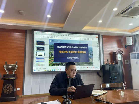 施国扣对高职联合体考试和市期末统测成绩进行分析,在肯定教师工作及取得成绩的基础上,对新学期教学工作提出三点要求:一是做分析,找准突破点;二是明导向,锚定发力点;三是抓落实,聚焦关键点。