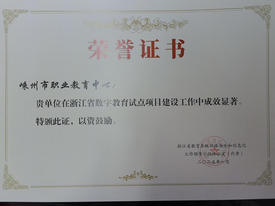 近日,嵊州市职业教育中心在浙江省数字教育试点项目建设中取得了显著成效,并顺利完成了省信息化标杆校的建设任务。这一成果得到了浙江省教育技术中心的高度认可,并寄来了“喜报”。
