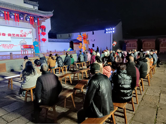 为使自己有个表演与学习的平台,2022年3月他将自己家的一楼改造成横店书场,每周六、日晚上坚持演出,吸引了周边的群众。这一坚持就是两年,不知不觉这个曲艺书场的公益演出竟达到了上百场。