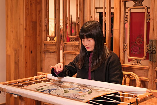 (3)非遗文化宣传推广:廖春妹积极参与国内外文化交流活动,多次举办刺绣作品展,参与纪录片拍摄,组织策划刺绣大赛等。她的努力不仅弘扬了中国刺绣文化,更为台州刺绣赢得了广泛的赞誉与认可。2010年配合温家宝总理访问韩国,在韩国首尔中国文化中心举办“山魂海韵---浙江台州中国画暨刺绣作品展”;2011年在全国政协大礼堂举办“绣都意韵——全国工笔画名家暨刺绣作品展”;2013年举办“绣都流韵刺绣艺术精品展暨全国工笔画名家邀请展”;2014年参加中国艺术国际行与罗斯洛克集团组织的美国“人与自然”文化交流活动;2015年参与CCTV4纪录片《穿越海上丝绸之路》拍摄;2016年组织策划、出资承办绣都杯刺绣大赛;参与国家广电总局与台湾中视拍摄的《天下作坊》;赴台湾参加浙江省文化节·台州文化周;2017年参与CCTV4《外国人在中国》栏目拍摄;2018年参加在台州府城刺绣博物馆举办的基层文联建设及民间工艺“双创”座谈会,中国文联党组书记、副主席、书记处书记李屹出席;参加浙江省文化厅与巴黎中国文化中心合作的“法国•浙江文化年”系列活动;参加北京卫视《创意中国2》栏目;2019年,在杭州浙江文化馆举办“大美不言——近现代刺绣收藏作品展”;2020年,参加了上海·台州周文化交流活动,与徒弟卢钇君现场演示台州刺绣非物质文化遗产;参加了浙江省文联名家孵化计划工艺美术人才交流展。……廖春妹的身影无处不在,她用自己的行动诠释着对台州刺绣文化的热爱与执着,为弘扬中国刺绣文化做出积极贡献。