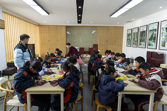 进校园:覆盖全镇主要中小学,积极开发《良渚玉雕启蒙》等系列课程。