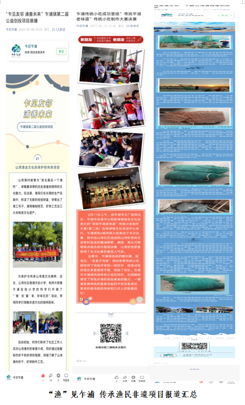 “渔”见乍浦 传承渔民非遗项目的开展,有一定的计划和活动的安排,可以为师生、辖区居民提供更加丰富和实际的学习体验,从而更好地掌握和传承渔业非遗文化。可以让他们更加深入地了解乍浦渔业非遗文化的内涵和价值,提高他们的意识和认识,从而更好地维护和传承渔业非遗文化的价值。