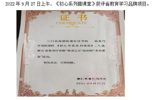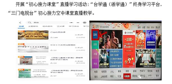 学校重点开发的《初心接力课堂系列》共87个教学视频,和《初心接力通识读本》等社区初心接力学习教育系列课程。通过“三门电视台”初心接力视听课堂、“浙开·浙里美”空中初心接力课堂等面向地区和全省开放,助力更多家长时时可学、处处可学,营造人人学初心接力学习教育、人人促初心接力学习教育的社会氛围。