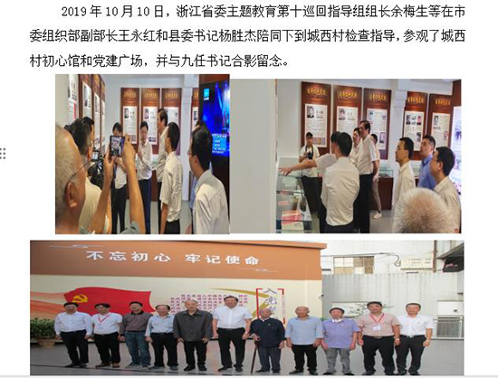 《“初心接力”学习馆》被定为浙江省、台州市、三门县三级爱国主义教育基地,以及台州市“跟着红色地图学党史”现场学习教育基地、台州市初心使命教育基地。随着深入学习贯彻习近平新时代中国特色社会主义思想走入走新,各级单位组织党员、群众前来调研考察、参观指导。自建馆来共接待前来省市县各级考察团共120批次3500人。开展“初心接力”红色足迹体验学习活动。2019.11.8,时任浙江省委副书记、省长袁家军带领省级相关部门负责人来三门城西村初心馆开展调研活动。2023.12.27,时任省委书记易炼红等领导来城西村初心馆,考察了解农村党组织开展主题教育和党建引领乡村振兴等情况。2019年10月10日,时任省委主题教育第十巡回指导组组长余梅生等领导到城西村初心馆和党建广场体验学习,并与九任书记合影留念。