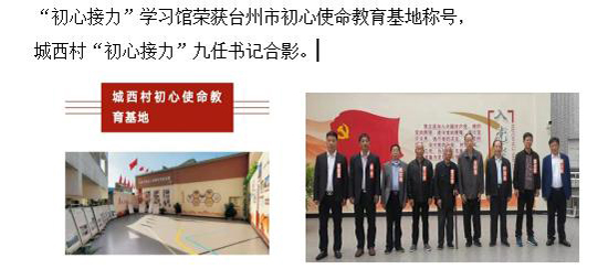 为大力学习、宣传和弘扬城西村九任党组织书记“不忘初心,一任接着一任干”精神,海游街道社区学校坚持“优势互补、资源共享、共同发展”的原则,于2017年7月与城西村共建《“初心接力”学习馆》,系统谋划,整体推进,开展形式多样、内容丰富的思政教育实践活动,充分发挥着党性教育基地作用,打造了社区思政教育特色品牌,据不完全统计,至目前共服务社区人群超30000人次,为守正创新推进社区思政教育内涵发展、构建终身学习体系展现了新作为新成效。
