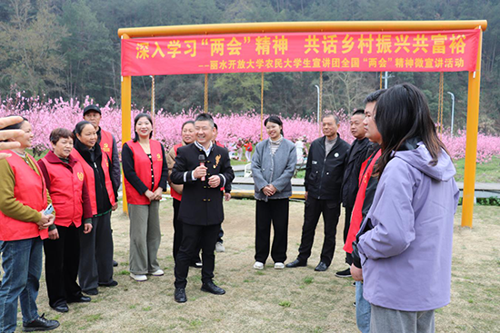 丽水开大农民大学生宣讲团是全国开放大学系统首个农民大学生新思想宣讲团,自成立以来,本着“讲好乡村振兴故事,传播理论好声音”的宗旨,深入农村文化礼堂、田间地头、百姓家中,宣传十九大、二十大精神。宣讲团“聚是一团火,散是满天星”,既有组团宣讲,又有分散宣讲。并充分发挥开大的系统办学优势,不断创新宣讲形式与载体。好多宣讲员已成为宣讲名师,受邀到全国各地宣讲70多场,学生楼干强还走上了清华大学讲台与第17届中国东盟社会发展与减贫论坛。