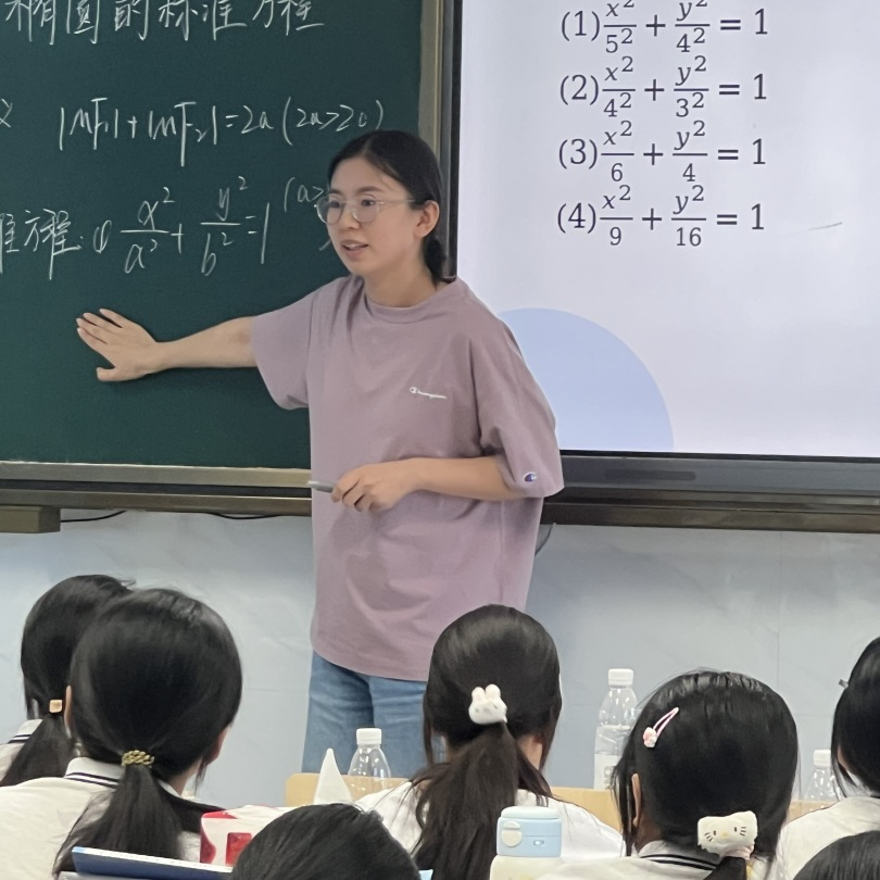 8时50分,衢州旅游学校的程肖瑜老师在8-405教室率先开课,结合本次研讨主题,她以中国人造卫星事业引入,以科研人员精益求精,越挫越勇的工匠精神进行思政教育,课堂中,她让工美学生利用画板,绳子,钉子动手画椭圆,在画的过程中感受椭圆的生成过程,接着借由圆的几何性质和方程的推导过程的学习经验,类比至椭圆的几何性质与方程推导过程,整个教学巧妙结合,精准的教学定位、清晰的逻辑架构,点燃了学生们的学习热情。随后,衢州理工学校的陈雪蕾老师在8-404教室接力授课,针对高二7班学生特点设计互动环节,通过具象化演示与分层提问,让抽象的数学知识变得可感可及。
