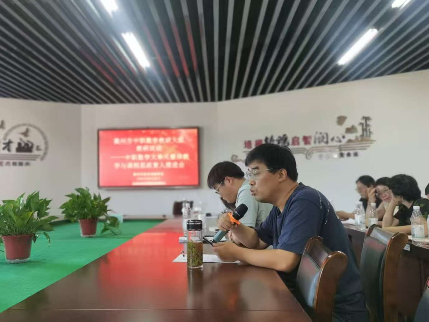 午后的研讨环节聚焦实践落地,由浙江省衢州数字工业化学校正高级徐春红老师统筹主持。首先徐老师对全市高一上学期期末考试成绩进行通报,结合学情数据精准分析教学现状,明确了下一阶段的教学重心。其次,由衢州第二中专王建军老师作课程思政学习要点汇编的集体备课与教学研讨,并由衢州理工学校的正高级刘小康老师作总结性发言:强调数学老师在组织教学过程中要注意区域文化产业特色,遵循学科特点,探索衢州本地数学文化特色。接着由各校数学教研组长依次分享了各校在数学教学提质、大单元整体教学、课程思政育人等方面的实践经验,为与会者提供了可借鉴的教学思路与实施路径。