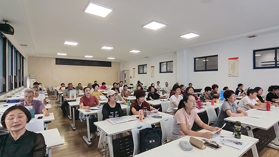 学员们学习热情高涨,认真跟随老师的节奏练习发声、调整音准,课堂氛围轻松而热烈。来自昌硕街道某社区的王女士表示:“平时就喜欢唱歌,但一直没接受过专业指导,这次成校组织的培训特别实用,蒋老师讲得细致,跟着学下来,感觉自己对这首歌的演唱把握更准了,希望以后能多参加这样的活动。”