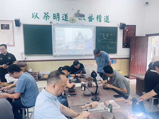 9月28日,培训进入实地研学环节。上午,学员们走进水口乡成人文化技术学校,实地踏看“紫笋茶艺”“紫砂工艺”特色展示区,直观感受该校品牌建设成果。随后,水口乡成校赵珍校长以《立足乡域特色 打造成教品牌 助力地方发展——浅谈紫笋茶文化体验品牌建设》为题作报告,分享该校依托地方特色培育成教品牌的实践经验,让学员深刻体会到“一校一品”建设的匠心与巧思。现场,学员们还分组参与手捏紫砂杯、宋代点茶体验活动,在动手实践中感受传统文化与职业教育融合的独特魅力。