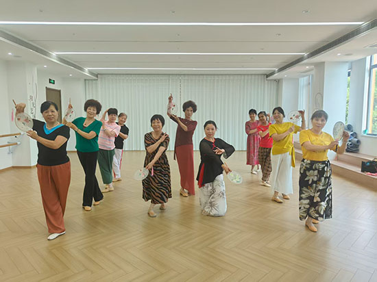 在党群服务中心舞蹈教室里,老师正带领学员们练习基础身段。伴随着悠扬的古典乐曲,老人们抬手、转身、屈膝,动作虽不似年轻人那般灵动,却透着一股认真与执着。“以前总觉得跳舞是年轻人的事,没想到自己也能跟上节奏,跳完浑身都舒服!”