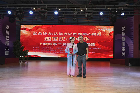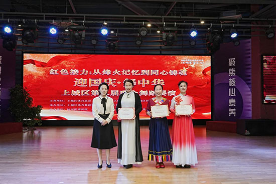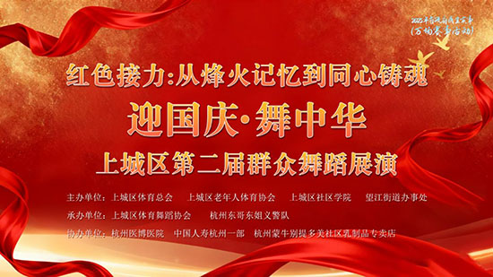 在中华人民共和国成立76周年到来之际,红色接力:从烽火记忆到同心铸魂“迎国庆 舞中华”上城区第二届群众舞蹈展演圆满落幕。此次展演由上城区体育总会、上城区老年人体育协会、望江街道办事处、上城区社区学院主办,上城区体育舞蹈协会、杭州东哥东姐义气警队承办,杭州医博医院、中国人寿杭州一部、蒙牛别提多美乳制品协办。上城区文化广电旅体局四级调研员黎骄,上城区望江街道党工委委员熊侃,上城区社区学院书记潘国伟,全国劳动模范史文斌等领导嘉宾出席。