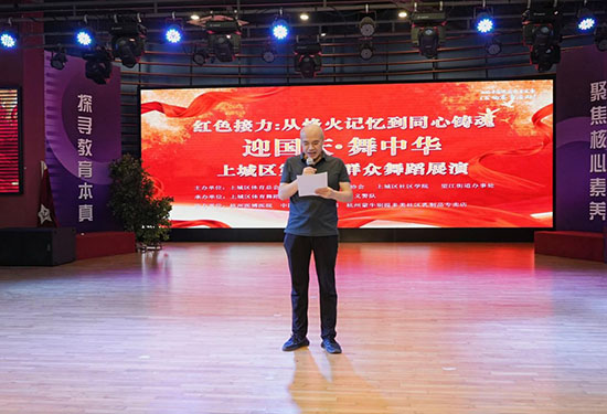 活动在庄严的国歌声中拉开序幕。主持人阿民师傅、王丽老师开场后,区文广旅体局四级调研员黎骄为展演致辞。他充分肯定了群众舞蹈在丰富基层文化生活中的重要作用,并寄语广大文艺爱好者继续用艺术讲好上城故事、传递时代强音。