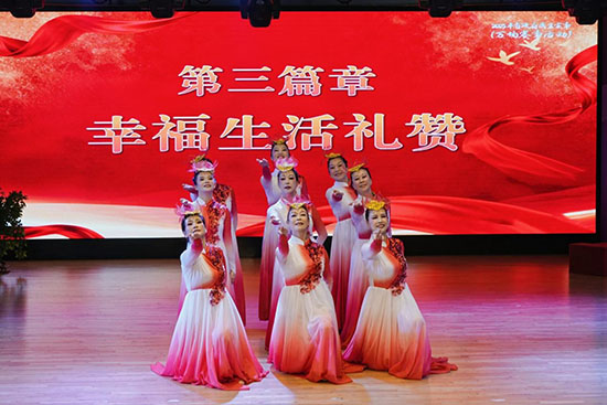第三篇章“幸福生活礼赞”以《花开中国》《家园》《青花瓷》《在“浙”幸福的田野》等节目,描绘出一幅幅美好生活的画卷,表达人民群众对家园的热爱、对未来的憧憬,传递出浓浓的幸福感与获得感。