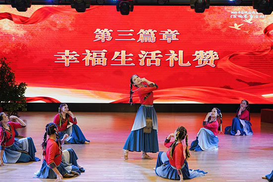 第二篇章“时代发展见证”以《苹果香》《喝彩巾帼》《亲吻祖国》等节目,展现各族人民团结奋进、共建家园的精神风貌,彰显新时代的生机与活力。