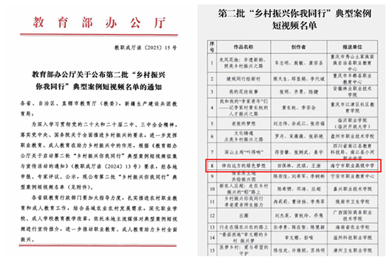 此次入选是对海职高服务乡村振兴工作的充分肯定,学校将继续深化职业教育改革,强化校地合作,进一步发挥专业优势,为乡村产业振兴和人才振兴提供更强支撑,为农业农村现代化贡献更多职教力量。