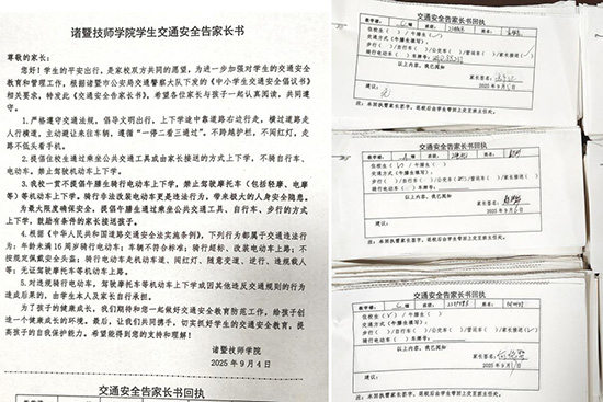 为切实消除学生上下学途中的交通安全隐患,筑牢校园周边道路安全防线,近日,诸暨技师学院安管处联动诸暨市浣东交警中队,在学校周边重点路段开展交通违规联合执法与现场教育指导活动,用“警校协同,家校互通”的力量为学生出行安全“加码”。