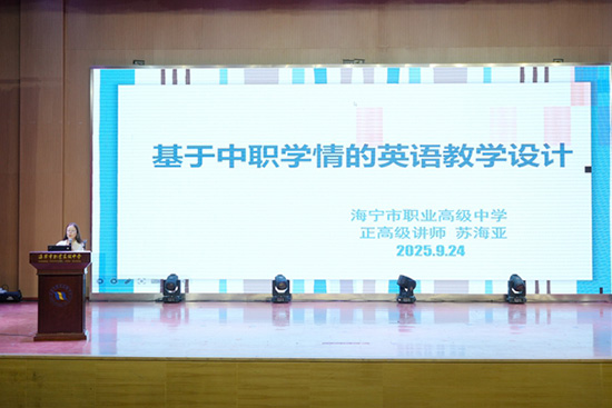 由海宁市职业高级中学英语正高级讲师苏海亚带来《基于中职学生学情的英语教学设计》专题讲座。苏老师分析了目前中职学生的学情特征,结合中职教育由就业为导向转变为就业升学并重的背景,依据“尊重差异、强调多元、崇尚个性”的教学理念,倡导中职英语的教学设计必须充分考虑学生的学情特征。并提出从改变学习环境、尝试多种适合学生的教学方法出发,设计符合学生学情和需求的中职英语教学设计。