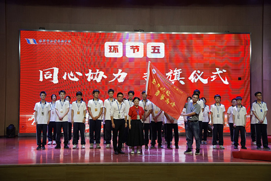 最令人振奋的当属授旗仪式。校长陆益飞老师与各专业部部长上台,将高考战旗逐一交到15位班主任手中。随着“画凌烟,上甘泉,自古功名属少年”、“乾坤未定,皆是黑马”等各班口号响彻会堂,学子们的高三使命感被彻底点燃,战旗飘扬间,满是“誓夺佳绩”的壮志豪情。