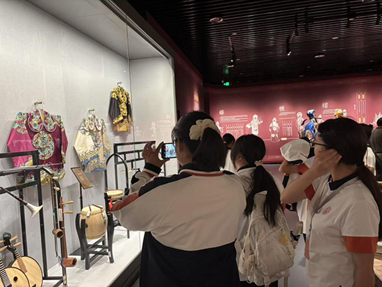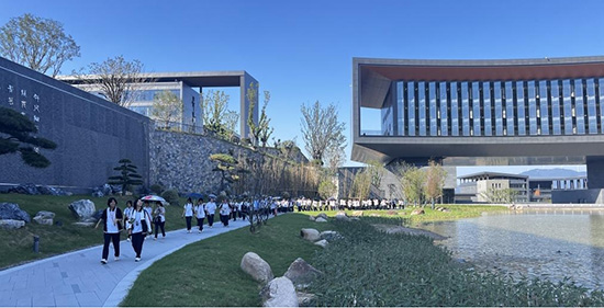 湖州职业技术学院艺术与时尚创意学院的李娜和李祯祯老师带领同学们开启了一场沉浸式的校园文化之旅。师生一行首先步入在包婉蓉京剧服饰馆,一件件绣工精美、纹样华丽的戏服静静陈列,同学们驻足良久,在服饰的方寸之间赏析传统美学展示的精美服饰与历史故事,吸引学生驻足赏析。在图书馆,丰富的专业藏书与便捷的数字资源,为学生们打开了一扇通往设计前沿的窗口。大家或翻阅纸页,或浏览数据库,在知识的海洋中寻找灵感,汲取专业成长的养分。