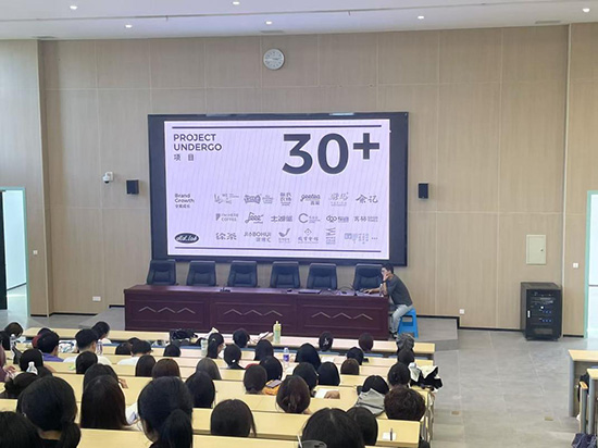 最后一站是备受期待的视觉传达设计专题讲座,由湖州董李文化发展有限公司的董思洋老师主讲,讲座重点聚焦于本土文创产品的开发与设计实践。董老师以“徐忠良非遗糕点包装设计”“飞英塔门票设计”等诸多本地特色产品的视觉识别系统设计为例,深入剖析了从文化元素提取到市场应用的完整设计流程。这些由董李文化公司开发的真实案例,生动展现了设计服务地方产业的巨大潜力与创新路径。此次讲座让同学们深受触动,大家纷纷表示,这些优秀的本土作品让他们“看见了设计的在地力量”,对“如何用专业能力呈现本土文化”有了更深的理解,也对自己的职业前景有了更清晰的展望。