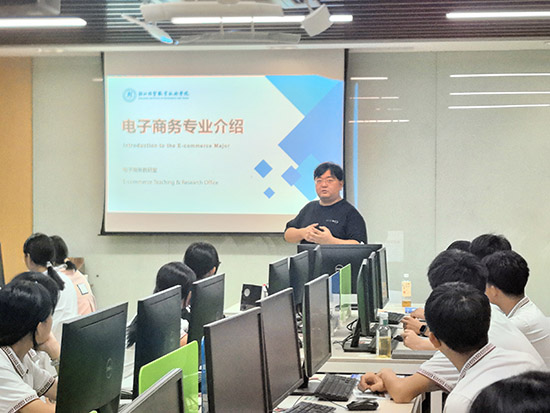 浙江经贸职业技术学院电商专业傅老师、夏老师、马老师、蒋老师,对同学们的到来表示热烈欢迎。随后,傅老师围绕电商专业展开详细讲解:该专业是国家高水平专业群核心专业,同时拥有省级重点专业、省级示范专业、省级特色专业称号,亦是省内唯一连续两届入选 “十二五”“十三五” 优势专业的电商类专业。讲解中,傅老师从专业发展历程切入,依次介绍学院电商专业的师生规模、人才培养质量指标,重点展示校内外实训基地建设成果,以及专业在课程设置、行业对接方面的独特优势;同时提及中外合作项目,说明其为学生搭建的多元发展平台,让同学们对电商专业的未来前景有了更清晰的认知。