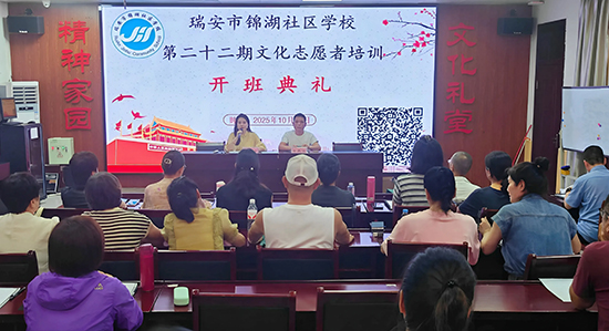 金秋十月,丹桂飘香。10月14日晚,瑞安市锦湖社区学校文化礼堂内灯火通明,第二十二期文化志愿者声乐班开班典礼在此举行,40余名热爱声乐的文化志愿者齐聚一堂,共同开启新一轮的音乐学习之旅。