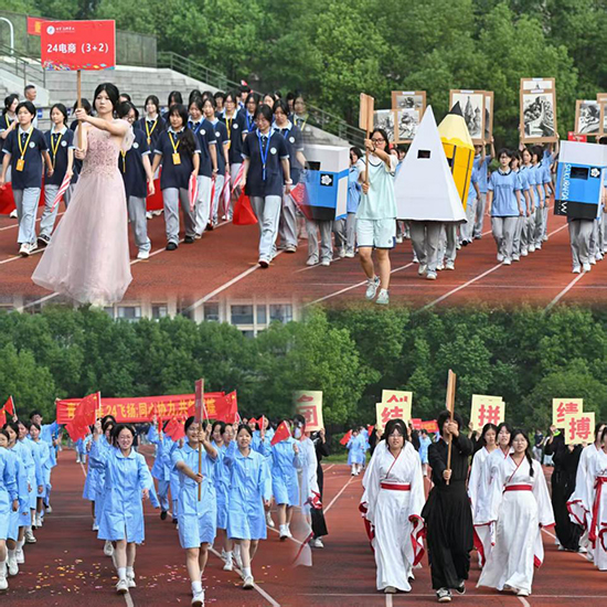 在庄严的升国旗仪式后,运动会的序幕顺利拉开。各班的入场式表演,同学们集思广益,将专业特色与艺术表演完美融合。有的班级身着统一的职业装,展示着未来工匠的风采;有的班级带来了活力四射的健美操表演,舞动着青春的节拍;更有班级以“为祖国国庆献礼”为主题,通过精心编排的队列和手势舞,表达了对祖国的深切热爱与祝福。每一个方阵都是一道独特的风景线,每一次表演都是一次才华的绽放,赢得了看台上师生的阵阵掌声。