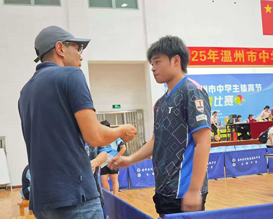 在刚刚落幕的2025年温州市中学生体育节乒乓球比赛中,温州市龙湾区职业技术学校乒乓球队的健儿们在德育处主任兼乒乓球队教练徐贤丰老师指导下,凭借出色的技术和顽强的拼搏精神,一路过关斩将,最终勇夺高中男子组冠军!这份沉甸甸的荣誉,不仅彰显了龙职学子的卓越风采,更是获得代表温州市出征浙江省中学生乒乓球赛的宝贵资格!