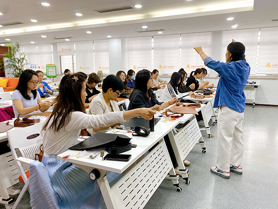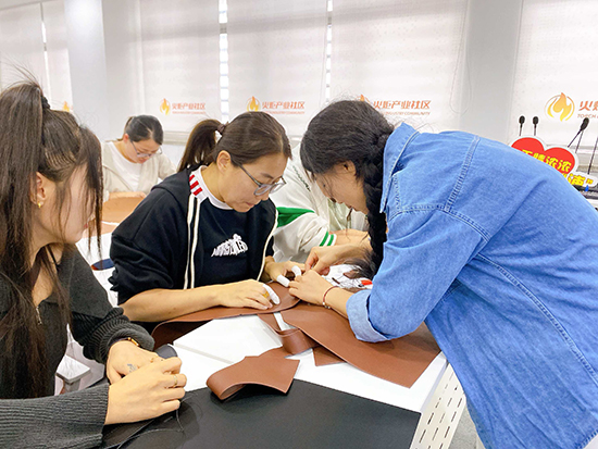 舒缓的轻音乐在现场流淌,大家围坐在一起,时而专注地穿针引线,时而互相交流制作技巧,偶尔为彼此的创意设计点赞。平时在办公室对着电脑久坐,这次亲手做皮包,不仅锻炼了动手能力,更感觉身心都放松下来了。