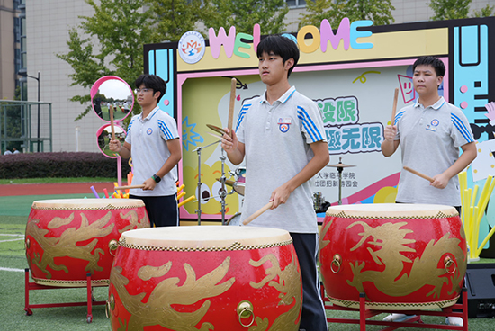 立荷击鼓队:压轴登场的立荷击鼓队,以 “传统击鼓 + 现代激情” 为特色,让社员在鼓点中释放活力。他们以鼓为笔,演绎《少年中国说》,激昂的鼓点如心跳般有力,跃动的节奏似脉搏般鲜活,既展现了传统击鼓的气势,也传递出少年的热血豪情,将整场演出推向高潮。