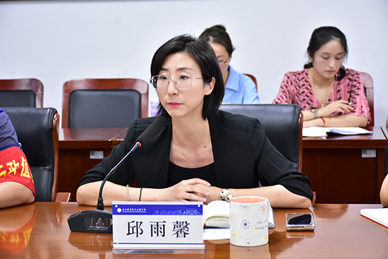 座谈会上,学校党总支副书记、校长邱雨馨就学校综合高中办学情况作系统汇报,从班级规模、师资建设、教学模式等方面介绍了办学基本概况,并结合上学期期末统考与学考成绩,详细阐述了为提升教学质量所实施的五项核心举措,包括深化校际教研协同、完善学生分流机制、健全教学评价体系等。