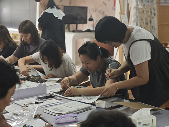 10月16日下午,新碶街道社教中心玉兰分中心二楼的阳光格外温柔。一场名为“以箔为墨,烁金流光”的非遗烧箔画DIY活动,吸引了社区内多位台湾太太与本地居民的积极参与,共同在烧箔画技艺中编织出跨越海峡的姐妹情谊。