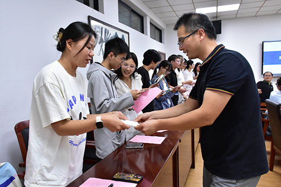 在师徒签订结对协议环节,双方郑重落笔,许下携手并进、共同成长的坚定承诺。随后,学校为新教师送上了精心准备的入职纪念品,一张定格着入职后第一次站上讲台的照片与一张祝福满满的明信片相互融合,汇成一份温暖的嘱托,表达了学校最诚挚的欢迎与关怀。同时,学校向导师们颁发了聘书,感谢他们所倾注的心血与智慧。