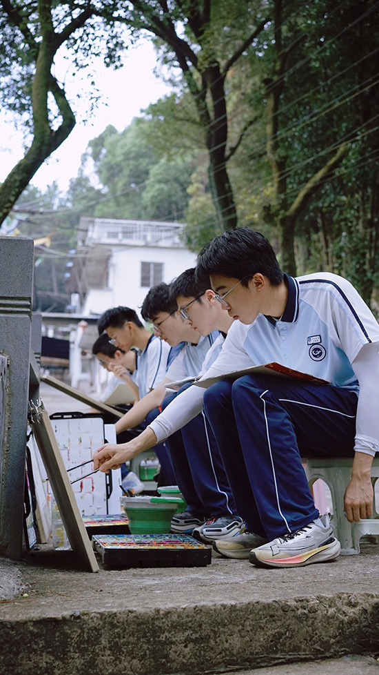 本次“色彩风景”写生课程作为继高一阶段色彩启蒙合作教学之后的第二模块延续,特邀高校博士与华侨职专教师共同授课,实施6周风景色彩课堂“双师共导”模式,祁博士将课程分成了“视角捕捉、色彩关系归纳、光色关系的把握、画面关系塑造”四大模块训练,最后在“写生实践”中实现综合提升。本次课程推进中职至本科七年一贯制教学体系的深度融合与有效贯通,进一步彰显学校在长学制艺术人才培养方面的专业优势。(叶颖颖)