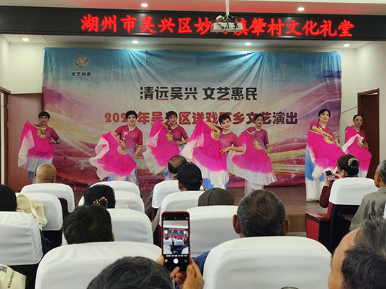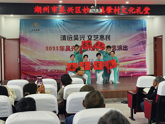 草根艺术团携手妙西镇老年学校联袂献演,《茶乡夜雨》《在湖州看见美丽中国》《七仙女喜赞中华新时代》等原创节目同台竞秀、相映生辉。他们在湖剧、越剧、黄梅戏等经典的基础上,融入现代声光、本土故事与时代金句,实现“老调新弹、古韵新声”,既守住非遗根脉,又彰显创新精神,为观众呈现“传承中有突破、创新中见传统”的沉浸式体验,生动诠释了“学习先行、传承继往、创新开来”的终身学习理念,赢得满堂喝彩。
