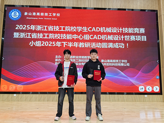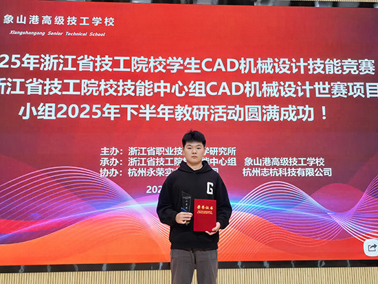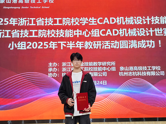 金秋十月,喜报传来。2025年10月24日,由浙江省职业技能教学研究所主办的2025年浙江省技工院校学生CAD机械设计技能竞赛在宁波象山落下帷幕,海宁技师学院学子凭借扎实的专业功底、精湛的操作技能与出色的创新表现,从全省精英选手中脱颖而出,荣获高级工组二等奖和中级工组三等奖,充分展现了学校在智能制造领域高技能人才培养的显著成效。