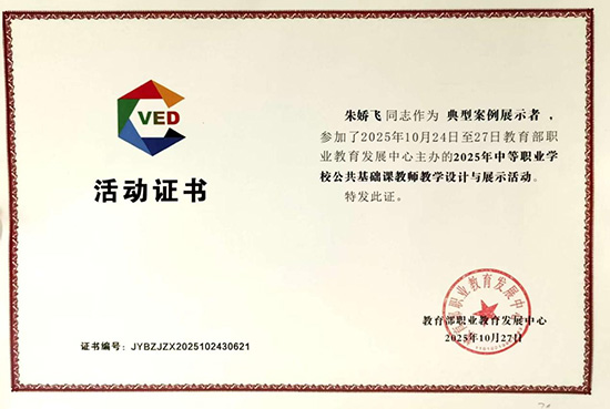 此次获奖,既是学校教师个人专业能力的精彩亮相,也是学校长期坚持教育教学改革创新、注重教师队伍建设的成果体现。未来,学校将继续支持公共基础课教师深耕课堂,推动教学内容与专业发展、职业精神的深度融合,为培养高素质技术技能人才奠定更坚实的人文基础。(蒋凤君)