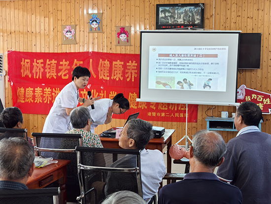 10月16日下午,诸暨市枫桥镇社区教育学校联合诸暨市第二人民医院,将实用的养生保健知识送到了屠家坞村。主任护师卓周平与内科主任骆一舟走进村文化礼堂,为现场老年人带来了针对性极强的健康科普讲座。