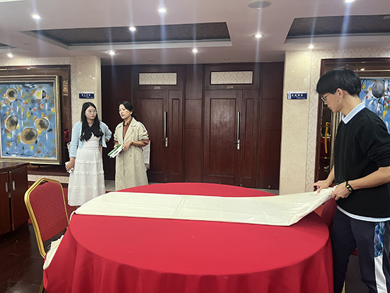 交流结束后,两人还实地观摩了铺床操作区和餐桌摆台技能训练现场。