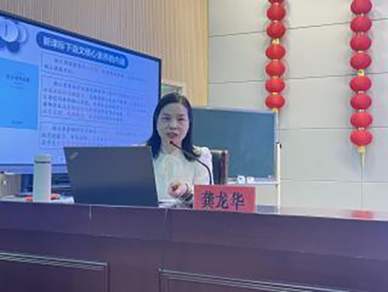 桐乡市教研科研中心龚龙华老师以《从课标到课堂:核心素养导向的初中语文新教材设计实践》为题,深入剖析新课标要义,阐释核心素养与教材、课堂的内在联系,并结合跨学科融合、整本书阅读、情境化教学等案例,讲解如何将理念转化为可操作的教学设计,落实语言运用、思维能力和审美创造等素养培养。