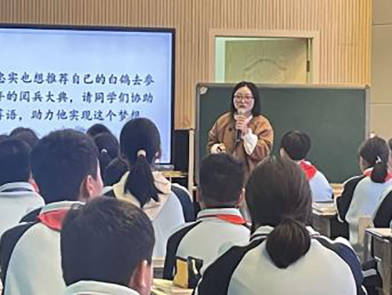 桐乡九中徐晓琳老师对周春梅老师《我的白鸽》一课进行点评,认为该课教学目标明确、任务层次清晰、学习支架有效,较好落实了核心素养培育。评课交流促进了教师间的互学互鉴,推动教学研究走向深入。
