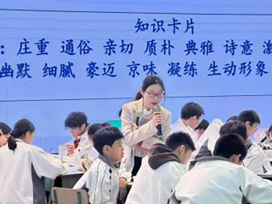 桐乡三中周春梅老师执教《我的白鸽》,以“白鸽参加阅兵”为情境,引导学生撰写推荐语并借助AI生成视频,课堂富有创新活力。长兴实验中学陈超老师执教《散步》,依托省编《作业本》,通过朗读指导和文本细读,引导学生深入理解文本。孙茵老师则融合绘画与诗歌,执教《唐诗五首》,引导学生感受意象与意境之美。林城中学汪涵、孙辉老师分别以“寄景抒情”设计“制作明信片”,绘制思维导图和三大任务来引导学生破译山水文字密码并联系自身表达,领悟山水文化内涵。龙山中学董蓝紫老师以“山水有清音”为主线,串联单元文本,实现知识整合与能力进阶。和平中学陆燕老师和古城中学孙悦老师分别执教八上第四单元起始课,陆老师以“读懂散文情思”为目标,设计“找形象、解情思、创插画”的学习路径;孙老师则以“散文小编辑”为情境,引导学生品读语言、感受情味,初步把握作家语言风格。