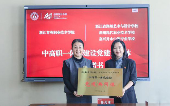 仪式上,浙江育英职业技术学院党委书记谢鑫向浙江省湖州艺术与设计学校党委书记方毅瑛授予“党建共同体”牌匾。学校第四党支部书记茅旭东与对方创意艺术学院院长宋连凯共同签署党建共建协议。下一步,双方将围绕组织共建、队伍共抓、资源共享、发展共谋四个方面展开深度合作,共同探索党建与业务融合新模式,推进人才培养优化与大思政课程建设。