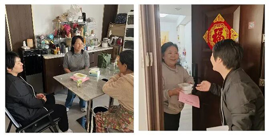 活动当天,社区工作人员带着软糯香甜、蕴藏“步步登高,健康长寿”寓意的糕点分组前往户籍老人家中。工作人员与老人们亲切交谈,仔细询问他们的身体状况和生活情况,叮嘱他们天气转凉,注意添衣保暖。一句句暖心的话语,一声声细心地嘱咐,给老人们带去了社区的关爱,让老人感受到社会大家庭的温暖。