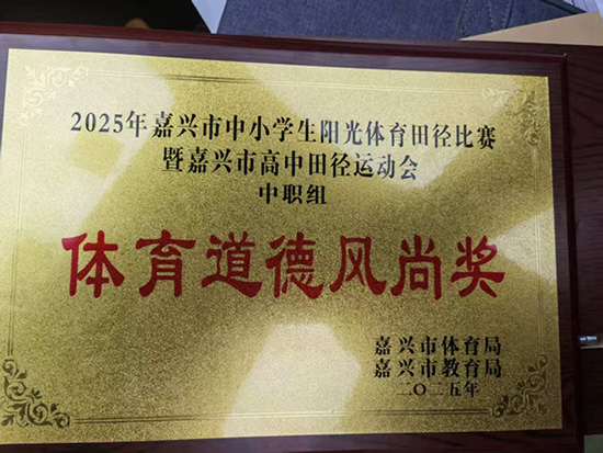 在中职组的角逐中,海职高田径队的运动健儿们凭借过硬的实力和顽强的斗志,蝉联嘉兴市中职组团体第一名,用一枚枚奖牌和一次次突破证明了队伍的统治力。更值得骄傲的是,团队还荣获体育道德风尚奖,在赛场上不仅展现了高超的竞技水平,更以尊重对手、遵守规则、文明参赛的作风赢得了全场赞誉。