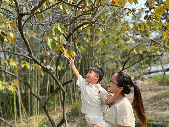 柿子树上挂满橙红的“小灯笼”,亲子采摘活动就此开启。家长和孩子手牵手,有的踮脚够柿子,有的用小网兜稳稳接住,欢声笑语洒满果园。摘下“战利品”后,孩子们围在一起观察:“柿子皮是光滑的还是粗糙的?”“里面的果肉是什么颜色?”最后品尝时,软糯香甜的口感让味蕾记住了霜降的味道,师幼、亲子协作的时光,也成了这个节气最温暖的回忆。